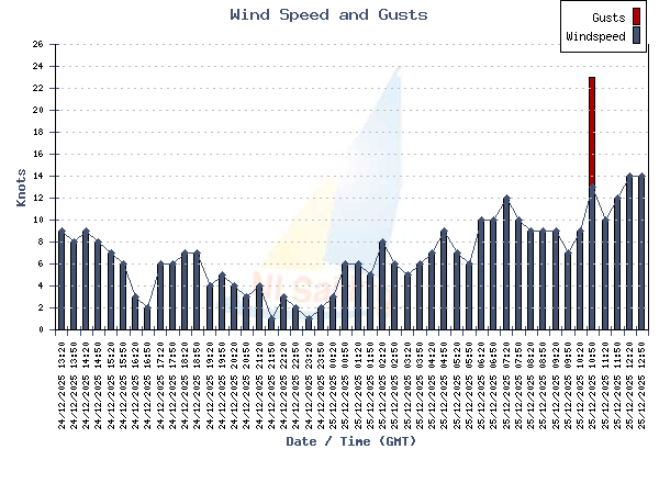 The graphs below show Barometer, Wind Speed and Temperature readings for the previous 24 hours.